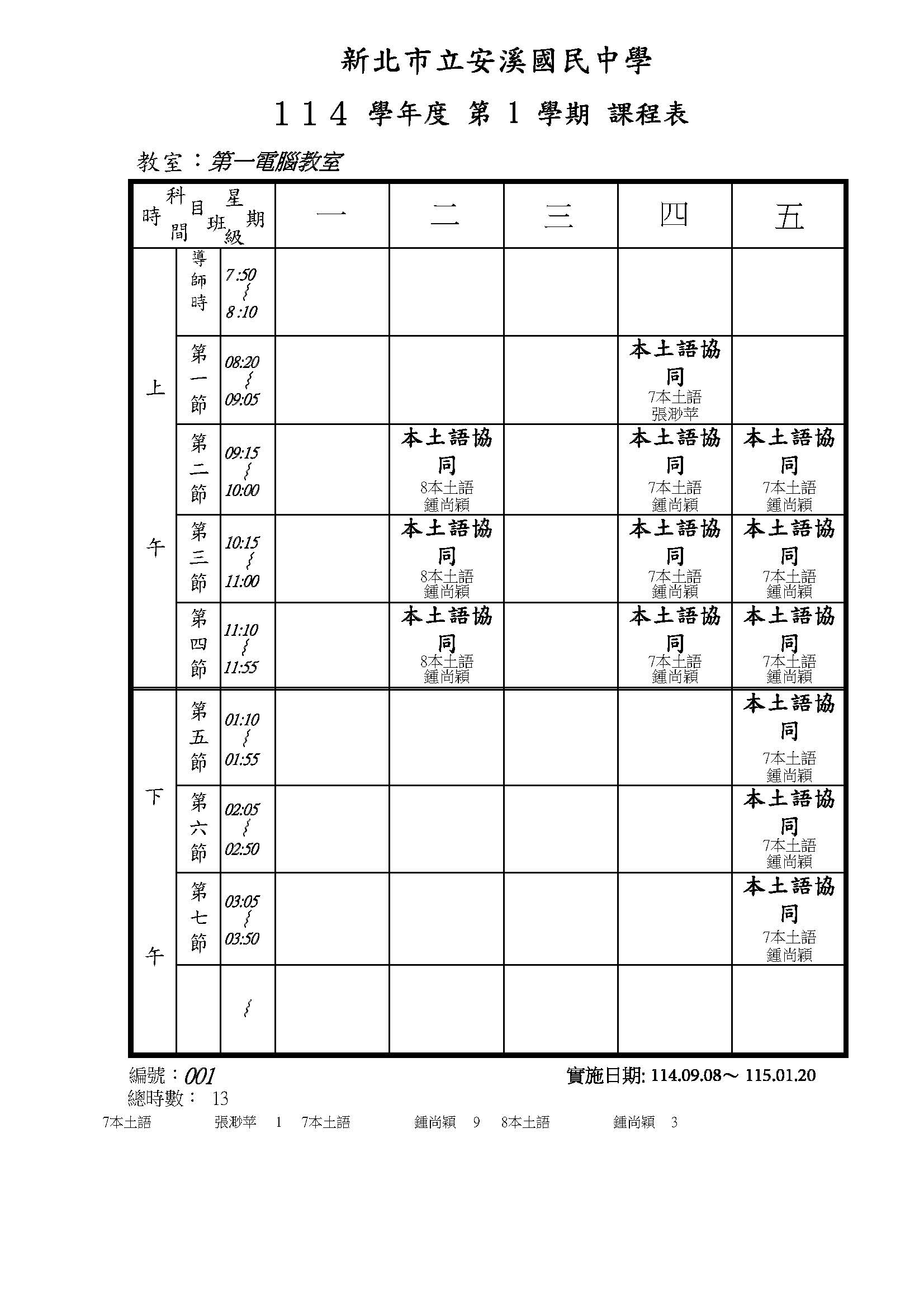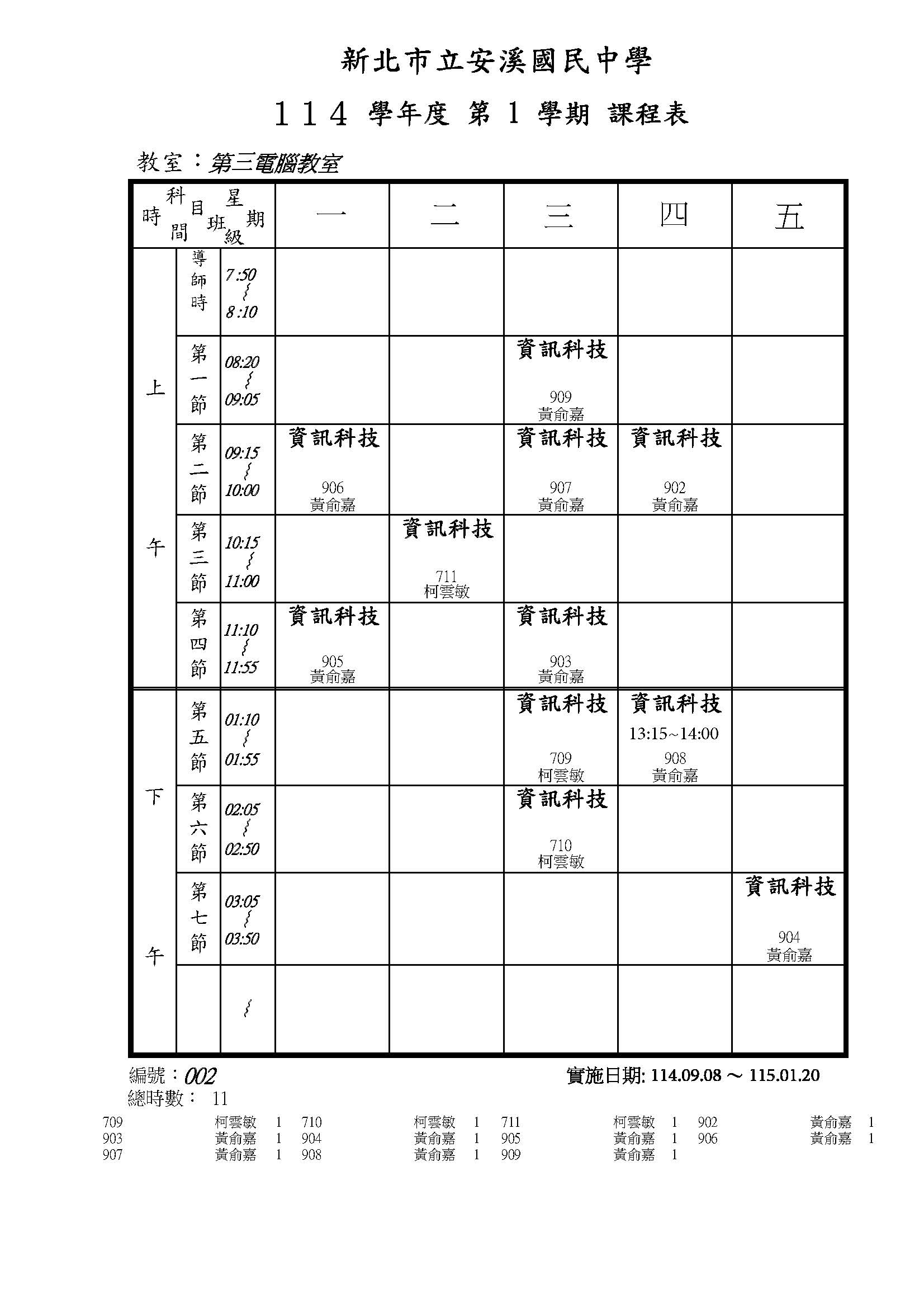 114-1 電腦教室課表